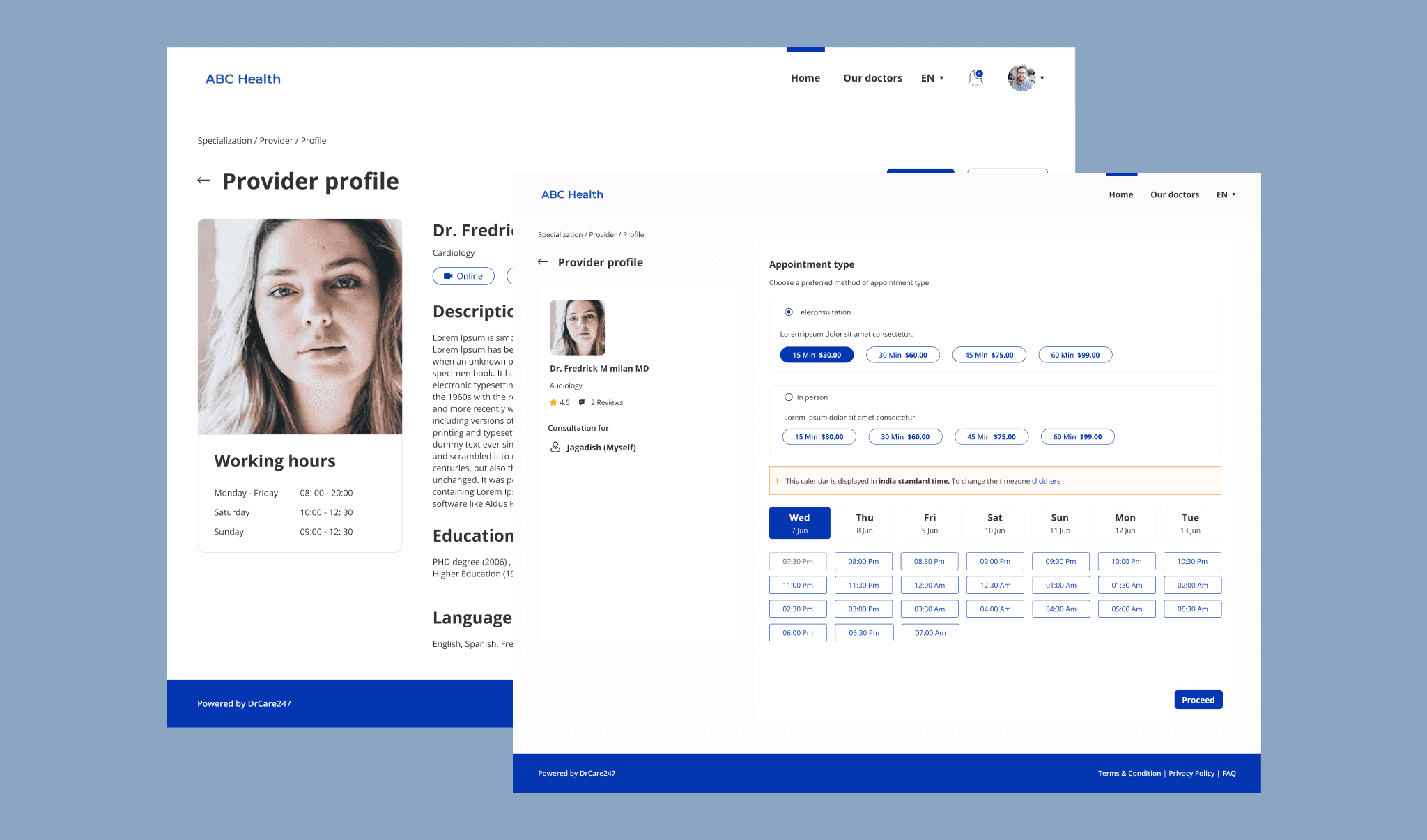DrCare (DrProject) is a health management app designed for users to track vitals, monitor calorie intake, and book doctor appointments. The client, Vinoth, wanted a customizable app that hospitals could rebrand with their logo and provide to patients.